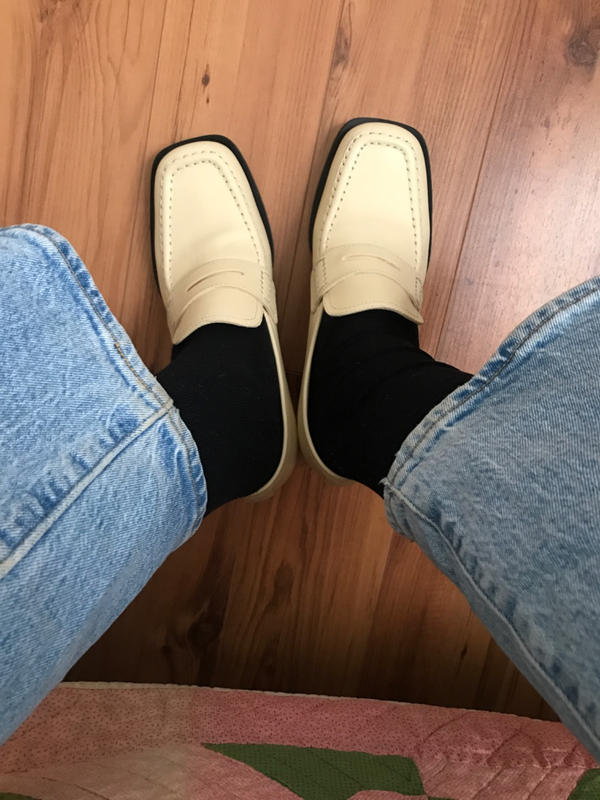 I’m not ordinarily a loafer gal but these shoes are honestly a dream. I waited for a long time to buy them because they’re definitely out of the normal range of my budget. But I saved up and bought them and I have been wearing them constantly. And the quality is really solid so I don’t have to worry about wearing them “too much.” I can tell they are going to hold up for a long while! I got the 38 which is super comfortable especially after one or two wears. I am usually a 7.5/8 and these fit as well as I could have hoped. They go with a wide range of outfits and make me feel special whenever I wear them. The cream color + heel is a fun take on a classic loafer. If I could afford it I’d buy the cognac too. Maybe one day down the road!
